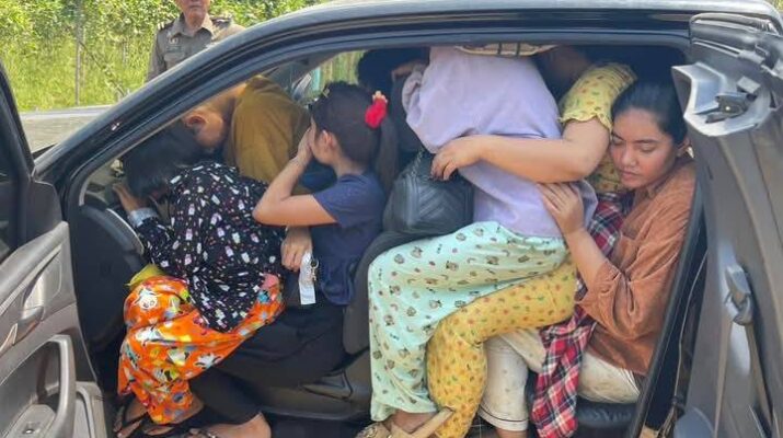 กาญจนบุรี ตร.ทล.ไล่ระทึกกระบะขนต่างด้าวหนีเข้าไร่อ้อยต้องเปิดลำโพงเรียกให้ออกมา