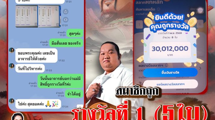 ลูกศิษย์ รับเต็มๆ30ล้าน วิหารเซียน มันตระสยาม ให้โชค รางวัลที่1ทีเดียว5ใบรวด