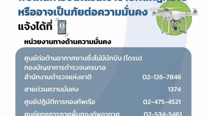 สมุทรปราการ ประกาศด่วน !! พบเห็นการบินโดรนเข้าข่ายผิดกฎหมาย หรืออาจเป็นภัยต่อความมั่นคง