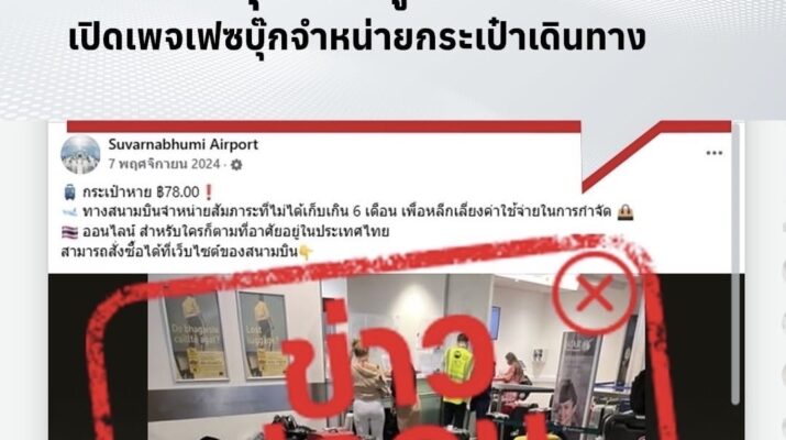 อย่าหลงเชื่อ “ข่าวปลอม” สนามบินสุวรรณภูมิ เปิดเพจเฟซบุ๊กจำหน่ายกระเป๋าเดินทาง