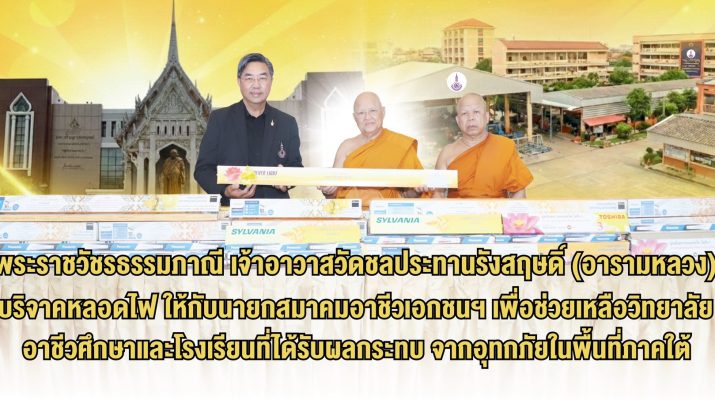 วัดชลประทานรังสฤษฏ์ บริจาคหลอดไฟช่วยเหลือสถานศึกษาประสบอุทกภัยภาคใต้