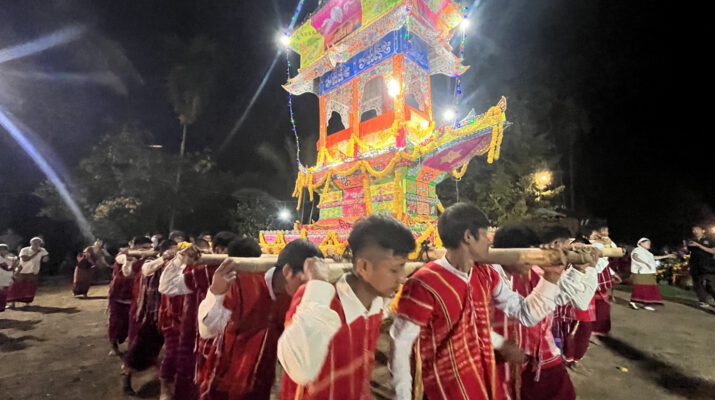 กาญจนบุรี คตินิยมในการแห่ปราสาทในงานศพพระสงฆ์ ของไทยเชื้อสายกะเหรี่ยงตำบลไล่โว่ อำเภอสังขละบุรี