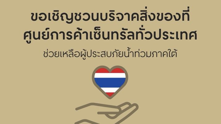 ศูนย์การค้าเซ็นทรัล ทั่วประเทศ เปิดจุดรับบริจาคสิ่งของ ‘ไทยรวมใจที่เซ็นทรัล’ ช่วยผู้ประสบอุทกภัย ภาคใต้