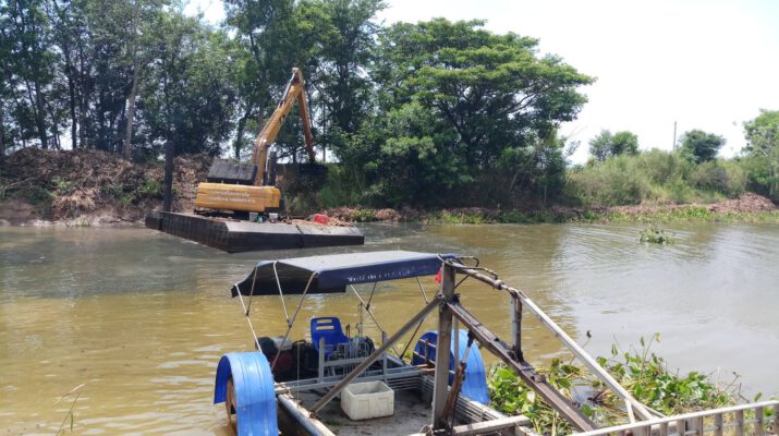 อ่างทอง ชลประทานลงพื้นที่ช่วยเหลือเกษตรกร ขุดรอกวัชพืชในคลองธรรมชาติ