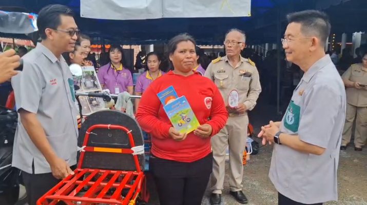 สิงห์บุรี ขนส่งจังหวัดติดแถบสะท้อนแสงรถจักรยานยนต์พ่วงข้างลดอุบัติเหตุ