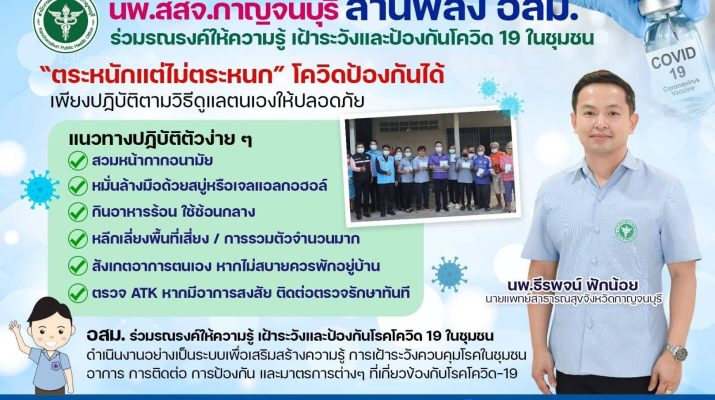 กาญจนบุรี นพ.สสจ.สานพลัง อสม. ร่วมรณรงค์ให้ความรู้ เฝ้าระวังและป้องกันโรคโควิด 19 ในชุมชน
