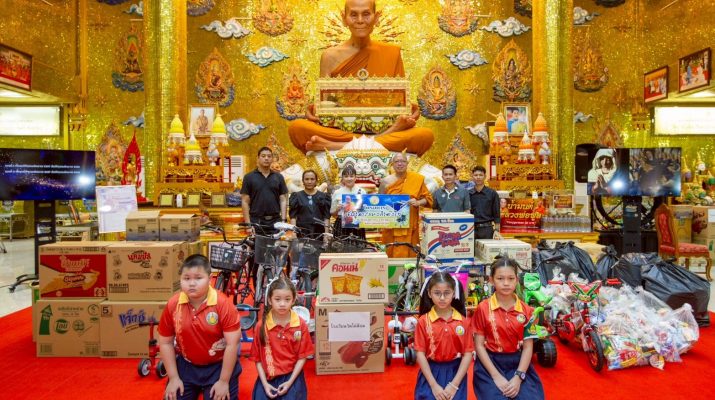วัดไผ่ล้อมฯร่วมกับ ร้านก๋วยเตี๋ยวลูกชิ้นปลานายเงี๊ยบ มอบรถจักรยาน ของเล่น ขนม ส่งความสุขรับวันเด็ก