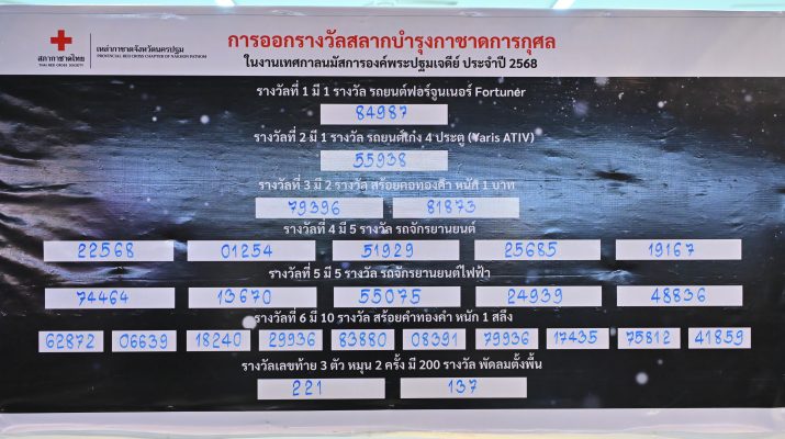 นครปฐม บรรยากาศการหมุนวงล้อเพื่อออกรางวัลสลากบำรุงกาชาดการกุศล