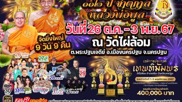 นครปฐม เริ่มแล้วงาน112ปีชาติกาล หลวงพ่อพูลวัดไผ่ล้อม นิทรรศกาลและมหรสพ 9วัน9คืน