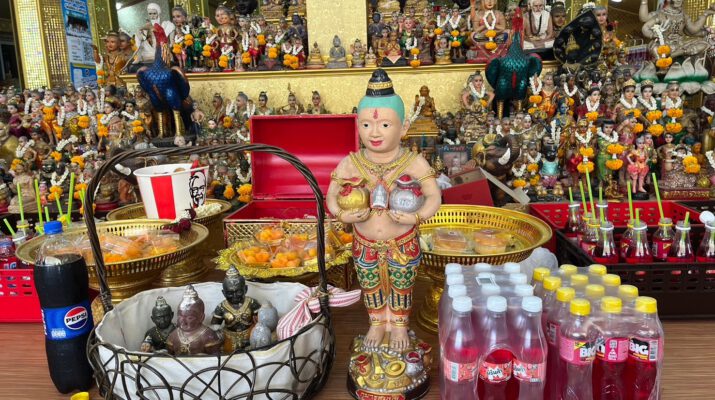 สาวใหญ่ ชาวศรีราชา ชลบุรี นำไก่ทอดชื่อดังแก้บน กุมารสมบัติ วัดไผ่ล้อม