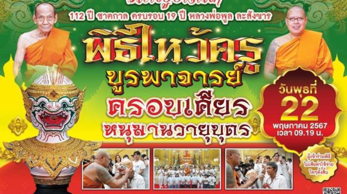 นครปฐม วันวิสาขบูชานี้เชิญร่วมพิธีไหว้ครูบูรพาจารย์ วัดไผ่ล้อม ครอบเศียรหนุมานวายุบุตร