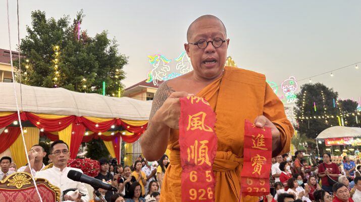 นครปฐม สาธุชนแห่ดูเลขประทัดจุดยกช่อฟ้าวัดไผ่ล้อม หวังรวยโชคใหญ่