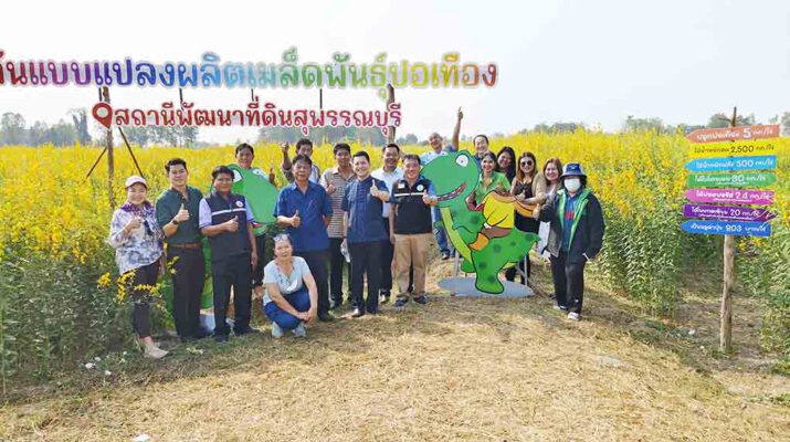 สุพรรณบุรี นายอำเภอสามชุกชวนเที่ยวชมชมความงามทุ่งปอเทือง