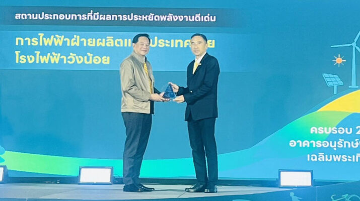 อยุธยา โรงไฟฟ้าวังน้อย รับรางวัลสถานประกอบการที่มีผลการประหยัดพลังงานดีเด่น