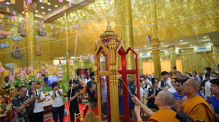 สมเด็จธงชัยจุดเทียนชัยมหาพุทธาภิเษกพระเหรียญพร้อมกันสองวัดดังนครปฐม