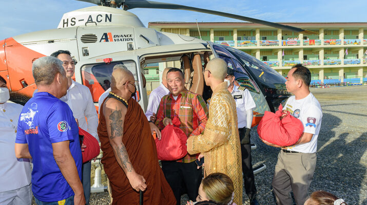 สมุทรสาคร งานบวชลูกชาย สท.ตำบลนาดี ขึ้นฮ.โปรยทาน