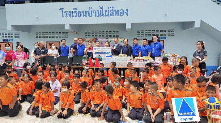 สุพรรณบุรี บริษัทศรีประจันต์วัฒยนต์ มอบคอมพิวเตอร์เครื่องกีฬาสร้างห้องสุขาให้นักเรียน