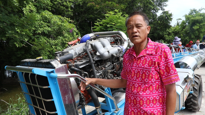 สิงห์บุรี อบต.พักทัน ใช้เครื่องเทอโบสูบน้ำซิ่งช่วยชีวิตปลาวัดห้วยเจริญสุข