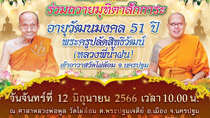 นครปฐม ขอเชิญศิษยานุศิษย์ร่วมงาน อายุวัฒนมงคล 51ปีหลวงพี่น้ำฝน