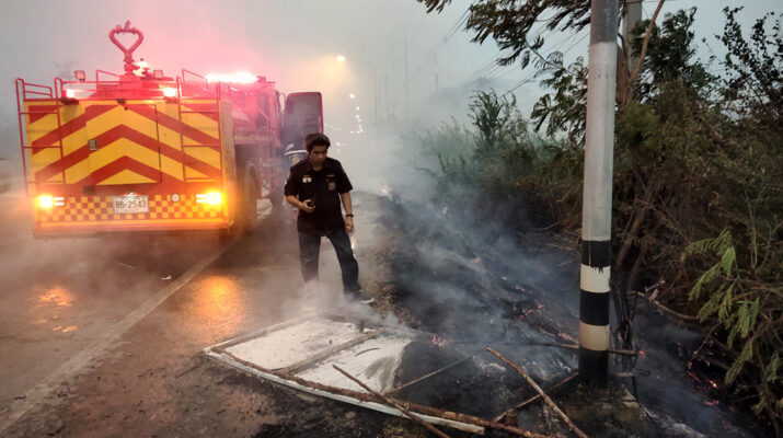 สุพรรณบุรี เผาฟางข้าวข้างทางเป็นเหตุให้รถชนกัน