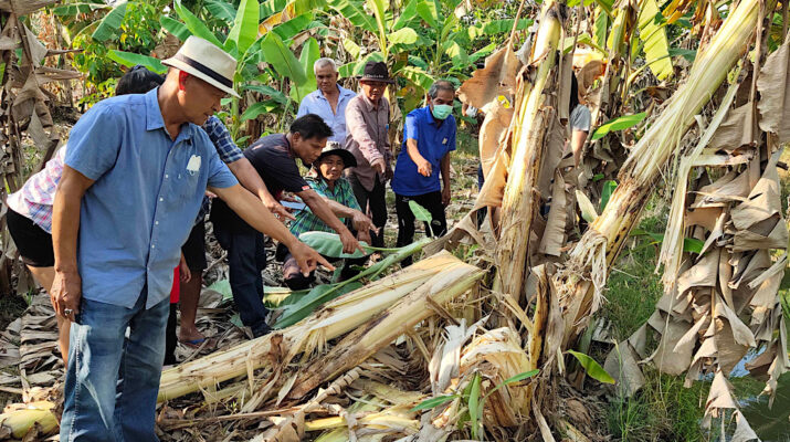 สุพรรณบุรี ชาวอู่ทองผวาพบรอยเท้าสัตว์คล้ายหมีทำลายดงกล้วย