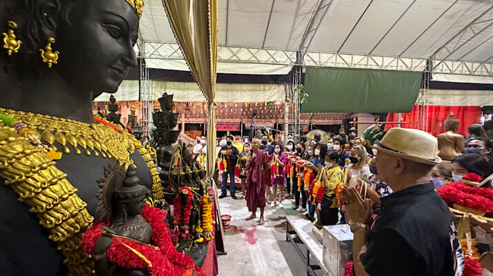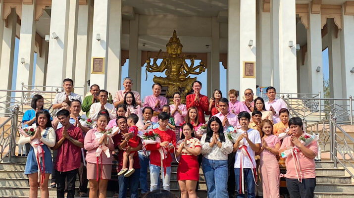 นครปฐม คนแห่ร่วมพิธีบวงสรวง พระตรีมูรติ ปาง 9 หน้าวัดหลวงพ่อป๊ะเกจิดัง