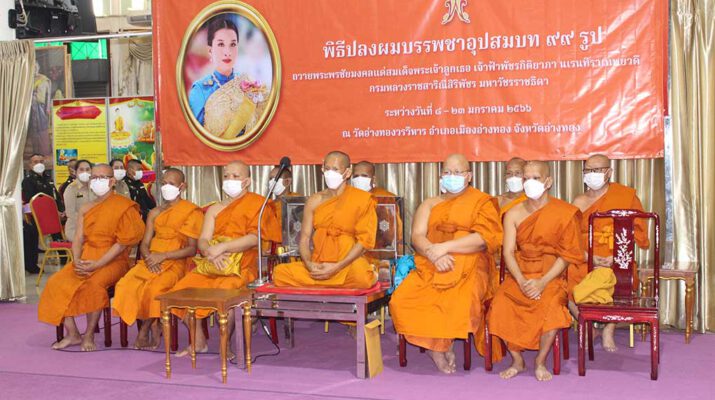 อ่างทอง จัดพิธีปลงผมนาค ในโครงการบรรพชาอุปสมบท 99 รูป