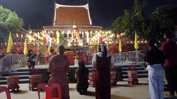 สุพรรณบุรี สาธุชนร่วมบุญแขวนโคมล้านนาบูชาพระบรมสารีริกธาตุ