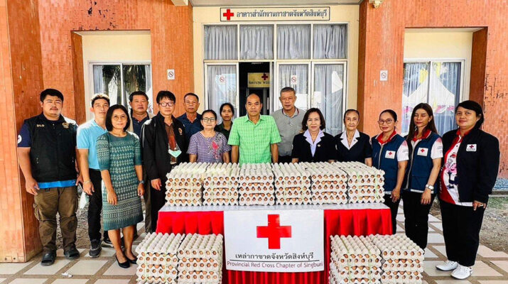 สิงห์บุรี ปศุสัตว์จังหวัดมอบไข่ไก่3,000 ฟองให้เหล่ากาชาดทำไข่เจียวงานเทศกาลกินปลาฯ