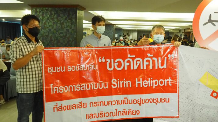 สมุทรปราการ ชาวบ้านยกมือคัดค้านการก่อสร้างสนามบินเฮลิคอปเตอร์ที่จะผุดกลางชุมชน