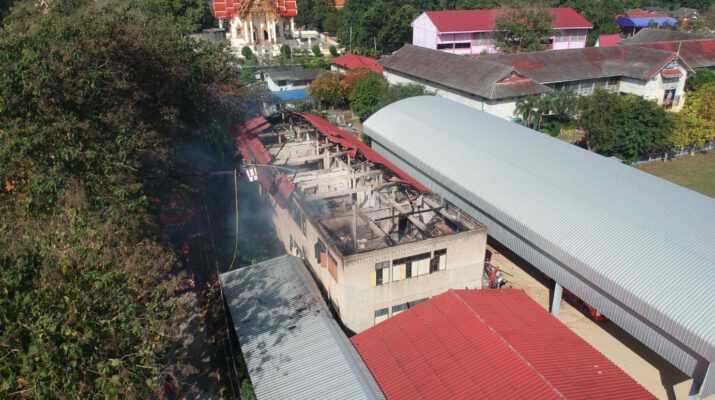 กาญจนบุรี ดับเพลิง10 คัน เร่งระดมฉีดสกัดเพลิงไหม้ โรงเรียนวัดศรีวโลหะฯ