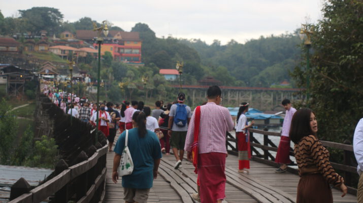 กาญจนบุรี บรรยากาศท่องเที่ยวอำเภอสังขละบุรียังคึกคัก นักท่องเที่ยวแห่รับลมหนาว