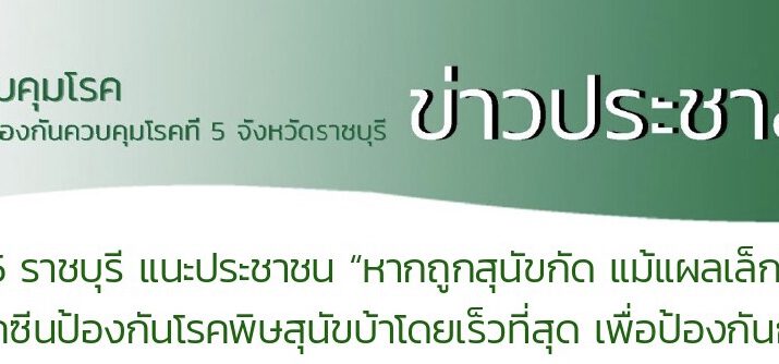 สคร. 5 ราชบุรี แนะประชาชน “หากถูกสุนัขกัด แม้แผลเล็กน้อย” ให้รีบไปฉีดวัคซีนป้องกัน