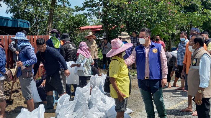 นครปฐม นายอำเภอพุทธมณฑล ลงพื่นที่ช่วยชาวบ้านน้ำท่วม