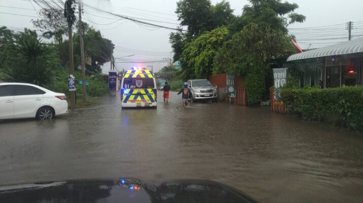 กาญจนบุรี พายุเนสารท ถล่มกาญจน์แล้ว เตือนผู้ใช้รถใช้ถนนระวัง