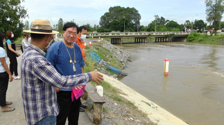 สุพรรณบุรี รมช.ประภัตร ลงพื้นที่แก้ปัญหาผักตบชวาทหารนำกำลังช่วยป้องน้ำท่าจีนท่วมวัดดัง
