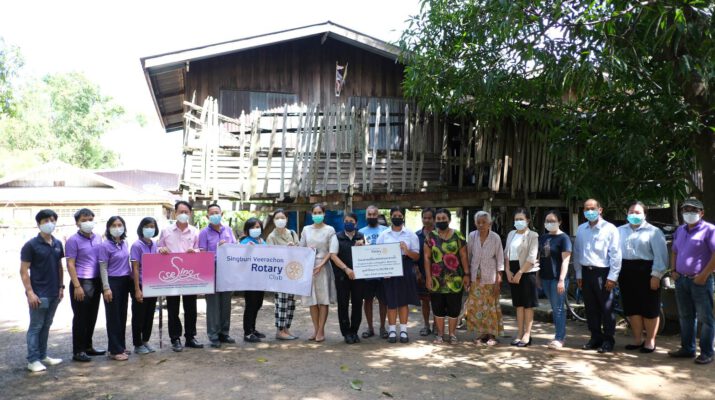 สิงห์บุรี สโมสรโรตารีสิงห์บุรีวีรชนส่งมอบการซ่อมแซมหลังคาบ้านให้กับนักเรียน