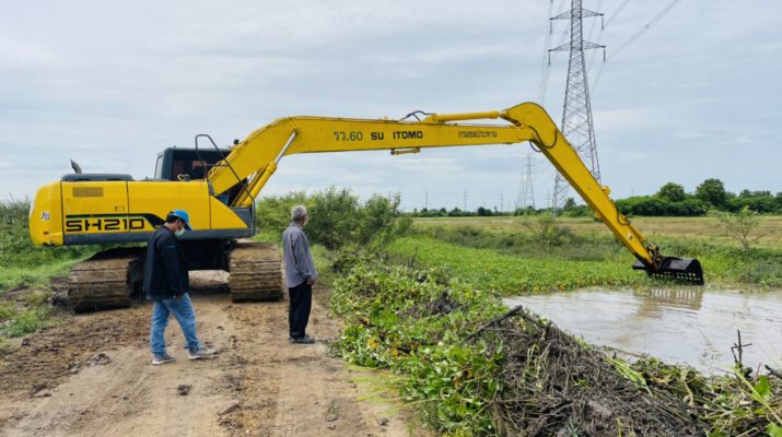 อ่างทอง โครงการส่งน้ำและบำรุงรักษายางมณี เร่งดำเนินการจัดเก็บวัชพืชผักตบชวา