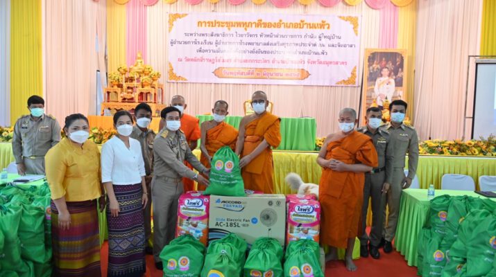 สมุทรสาคร เจ้าคณะภาค14มอบถุงยังชีพและเปิดการประชุมพหุภาคีของอำเภอบ้านแพ้ว