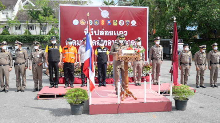 ตรัง ตำรวจภูธรจังหวัดสนธิกำลังร่วมในการปล่อยแถวระดมกวาดล้างอาชญากรรม