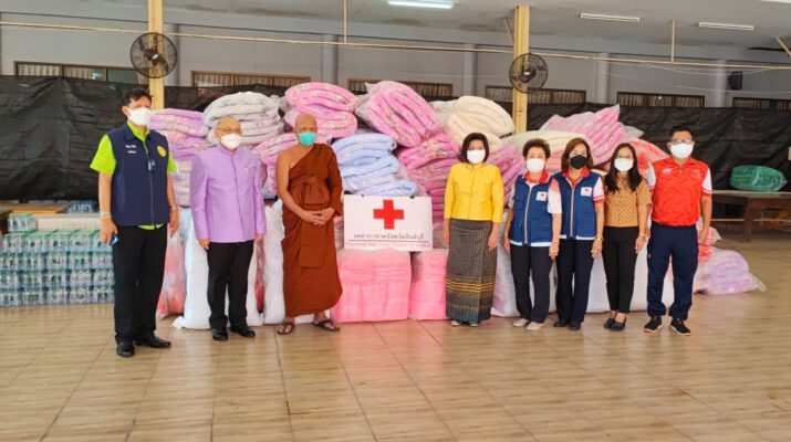 สิงห์บุรี สภากาชาดไทยมอบที่นอน หมอน ผ้าห่มและมุ้ง100ชุดให้รพ.สนาม วัดโพธิ์แก้วนพคุณ