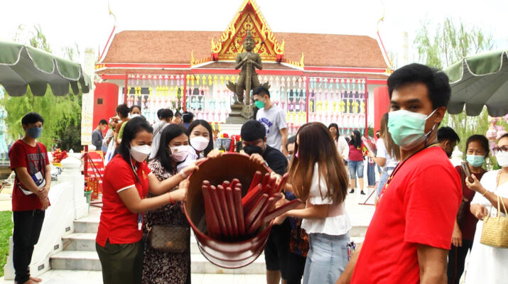 สุพรรณบุรี โค้งสุดท้ายคอหวยแห่เขย่าเซียมซียักษ์ขอโชคท้าวเวสสุวรรณวัดพังม่วง