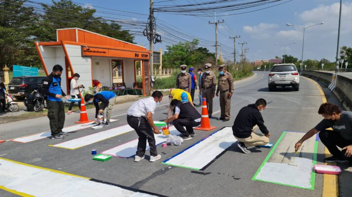 อยุธยา อบต.เกาะเรียนร่วมกับตำรวจทาสี”ทางม้าลาย”หน้าโรงเรียน