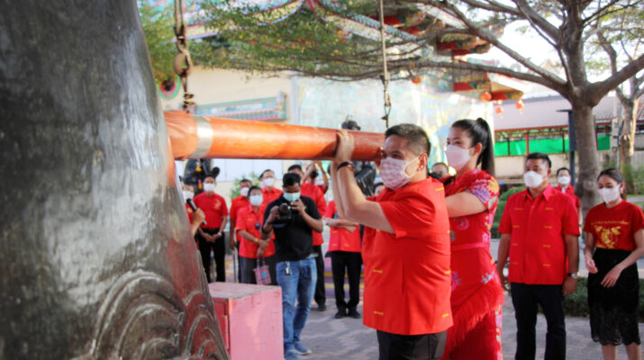 สุพรรณบุรี รมว.ทส.นำข้าราชการขอพรเจ้าพ่อหลักเมืองตีระฆังใหญ่ที่สุด