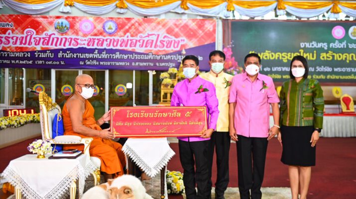 นครปฐม มอบป้ายโรงเรียนรักษาศีล5และการปวารณาตนเข้าร่วมโครงการฯ