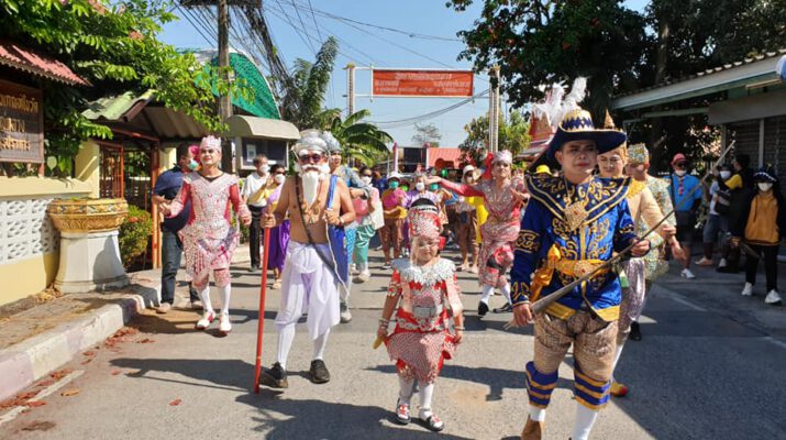 สุพรรณบุรี ขนส่งสุพรรณแห่เทิดเถิงหัวโตกลองยาวทางเรือนำหัวหมูแก้บนพ่อขุนช้าง