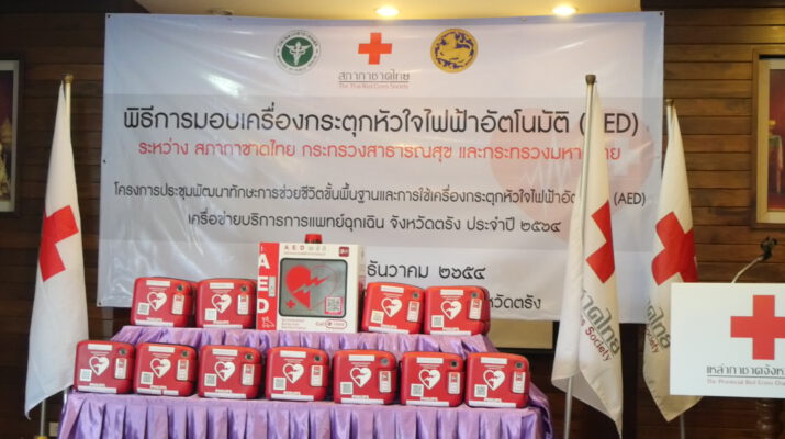 ตรัง ผู้ว่าฯส่งมอบเครื่องกระตุกหัวใจไฟฟ้าอัตโนมัติ (AED) และพิธีลงนามบันทึกข้อตกลง