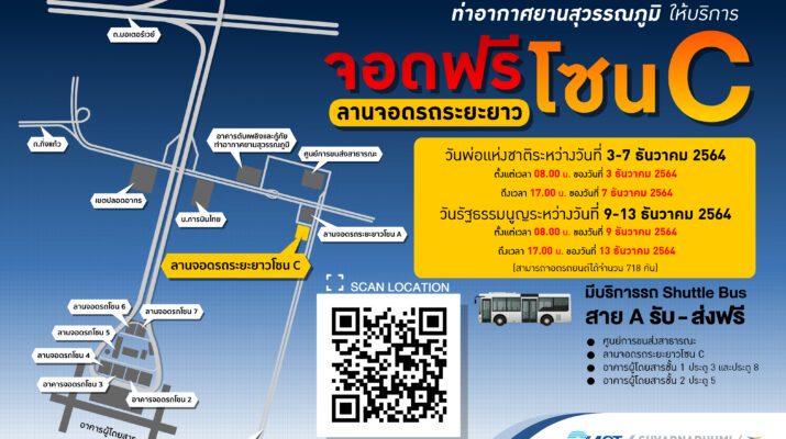 สมุทรปราการ ท่าอากาศยานสุวรรณภูมิเปิดให้จอดรถโซนCฟรีวันหยุดยาว