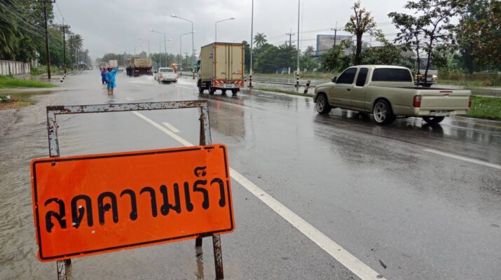 ประจวบคีรีขันธ์ เตือนอันตรายน้ำข้ามถนนเพชรเกษมที่ทับสะแก