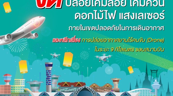 สมุทรปราการ AOT ขอความร่วมมืองดการปล่อยโคมลอยในเขตรอบสนามบินช่วงลอยกระทง